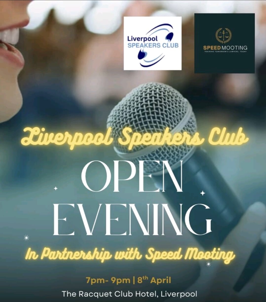 All of us at Liverpool Speakers Club are delighted to team up with our friends at Speed Mooting to host an open evening at Liverpool Speakers Club on Wednesday 8th April @ 7pm.